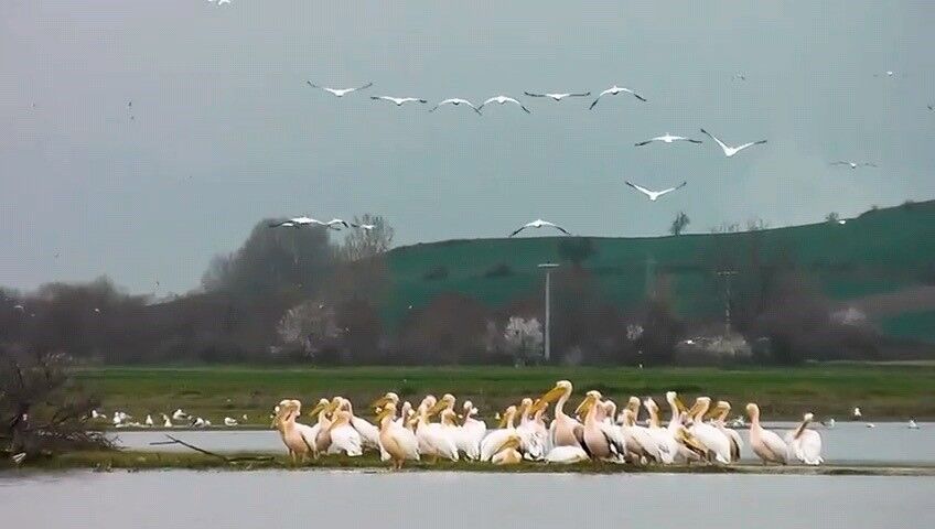 Göç eden pelikanlar Bursa’da mola verdi